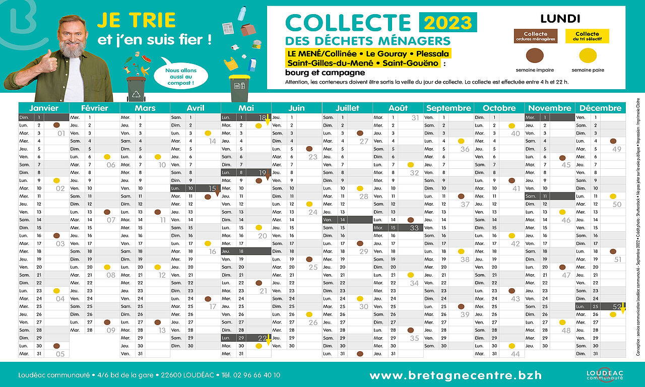 Calendriers de collecte des déchets 2023 Bretagne Centre