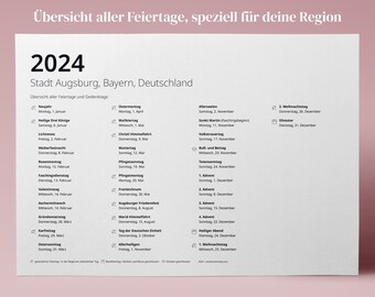Kalender 2024 + Ferien Bayern, Feiertage