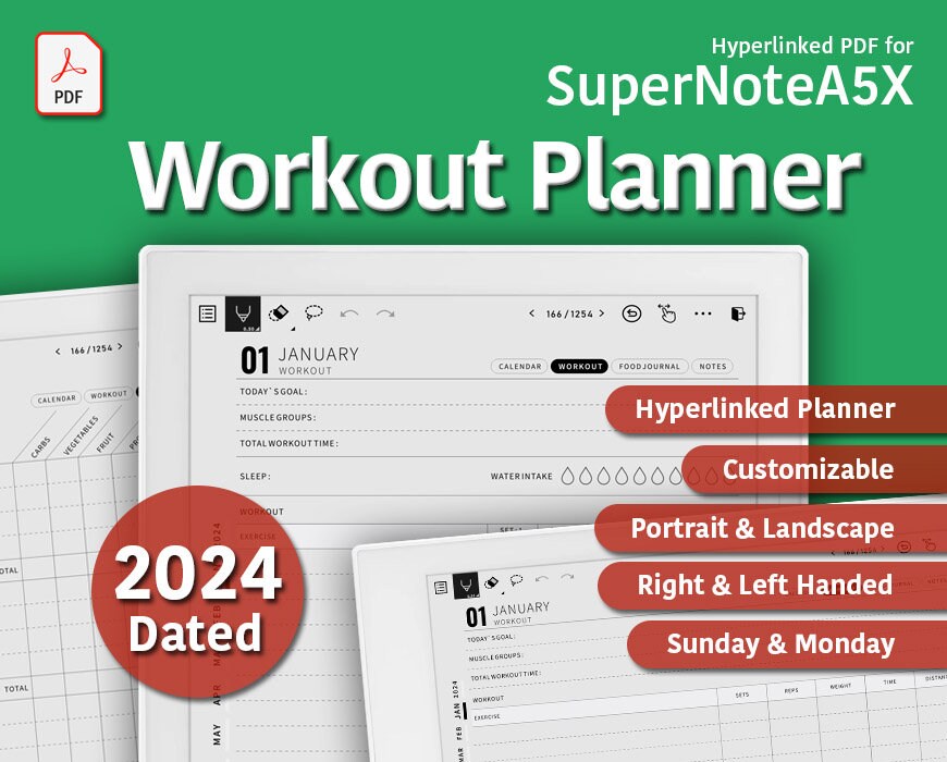 2024 Dated Digital Fitness Planner Daily Exercise Log for Etsy