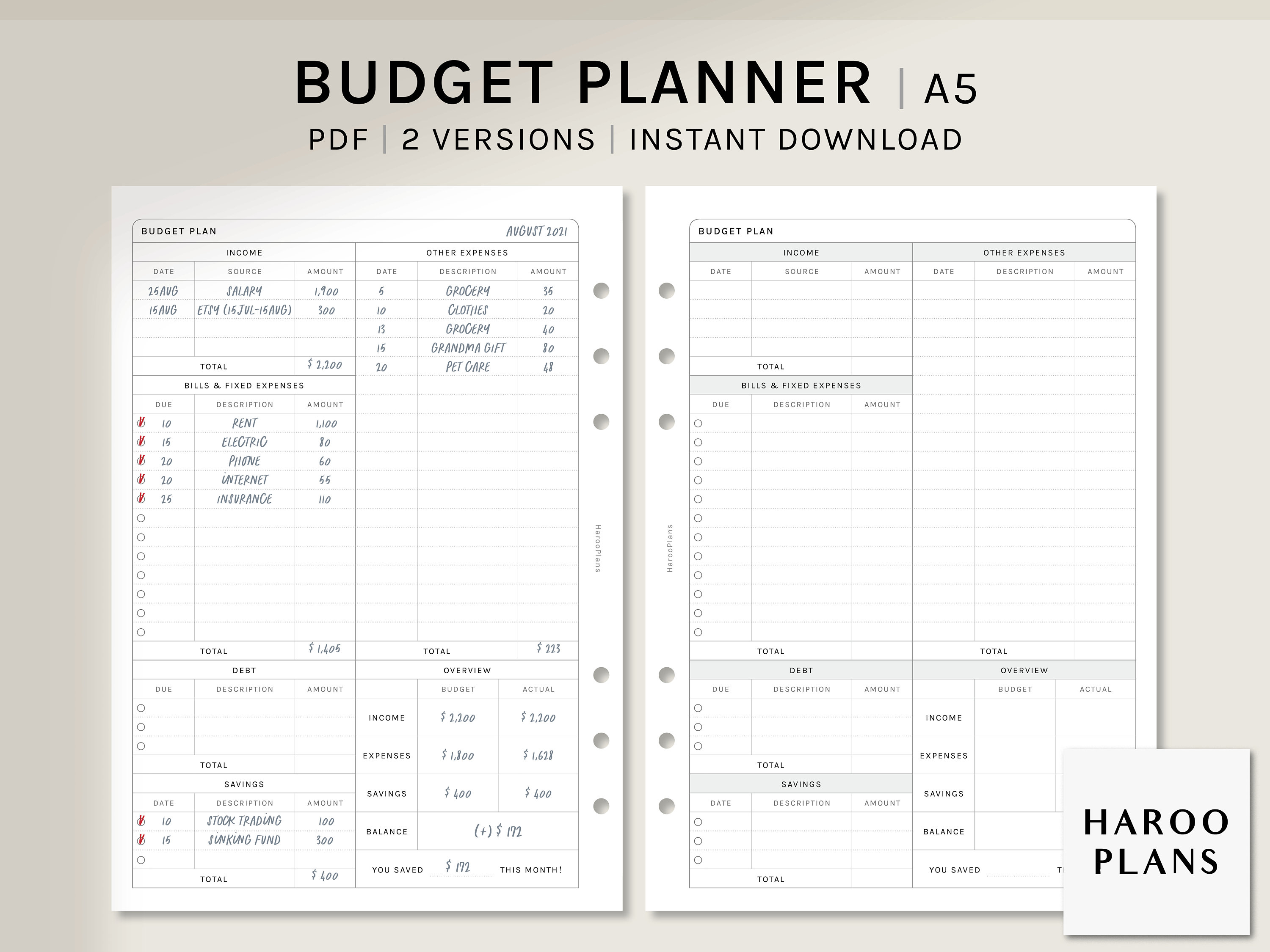 Budget Planner A5 Printable Planner Inserts Finance Etsy Australia