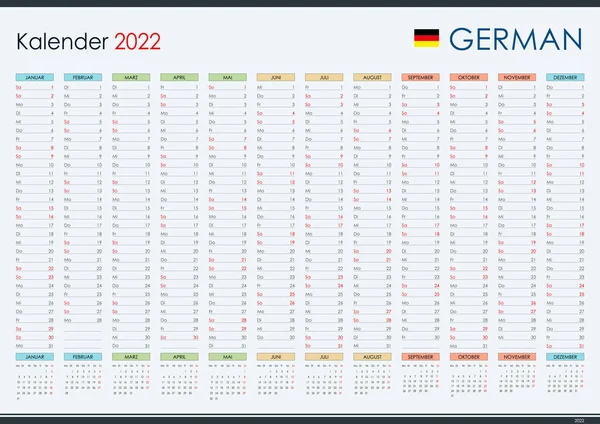 Linear Calendar 2022 Clear Design Horizontal Grid Selected Sundays